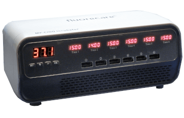 Der Thermostat „MF-C100“ ist die unbedingte Voraussetzungen die bestmöglichen Ergebnisse durch die Beseitigung von räumlichen Klimavariablen - die vor und während der Immunreaktion auf der Lateral-Flow-Testkassette auftreten - zu gewährleisten.